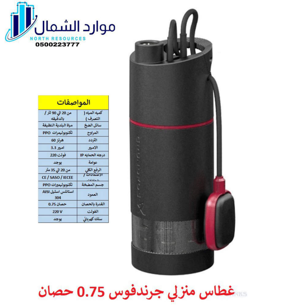 - متوفر بقدرة 0.8 حصان – 220 فولت – 60 هرتز.